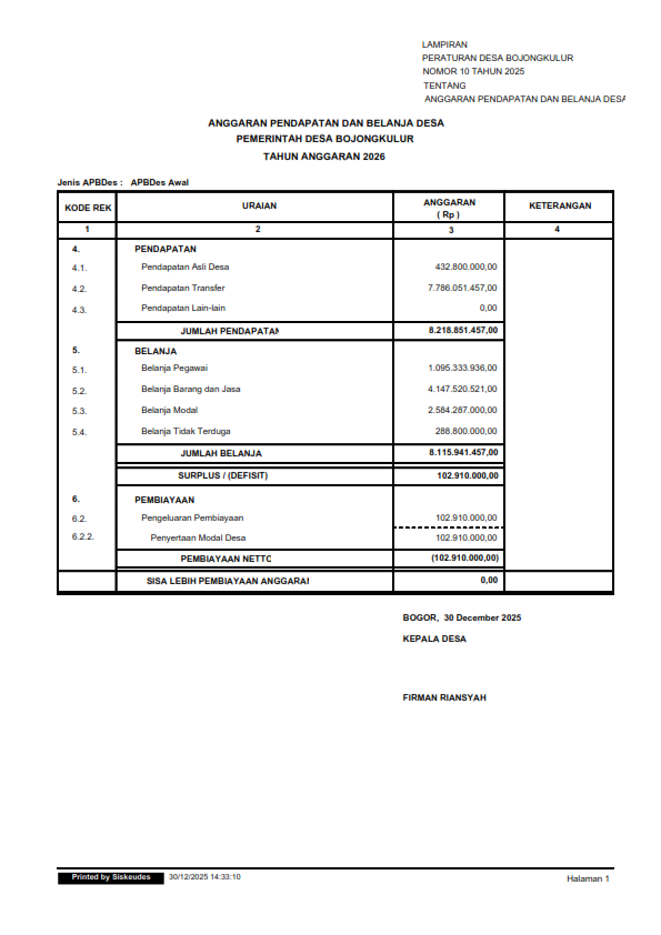 Peraturan Kepala Desa